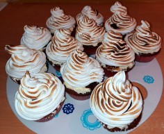 Babeczki o smaku waniliowym z konfiturą malinową i podpalaną bezą włoską