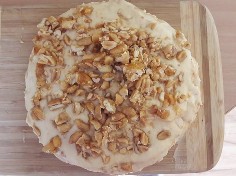 Torcik z masą na bazie śmietanki i mascarpone z dodatkiem musu z gruszek, sera gorgonzoli i orzechów włoskich